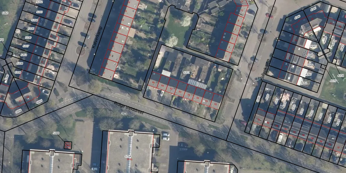 Ruige Velddreef 62 is gelegen op kadastraal perceel LDN02F5311. Deze kadastrale aanduiding is uniek en wordt gebruikt door het Kadaster om eigendomsrechten en andere zakelijke rechten vast te leggen. Het perceel maakt onderdeel uit van de kadastrale gemeente Leusden.