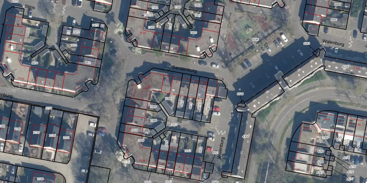 Gebruik de zoekbalk of klik op een perceel voor informatie over de adressen binnen dit perceel.
