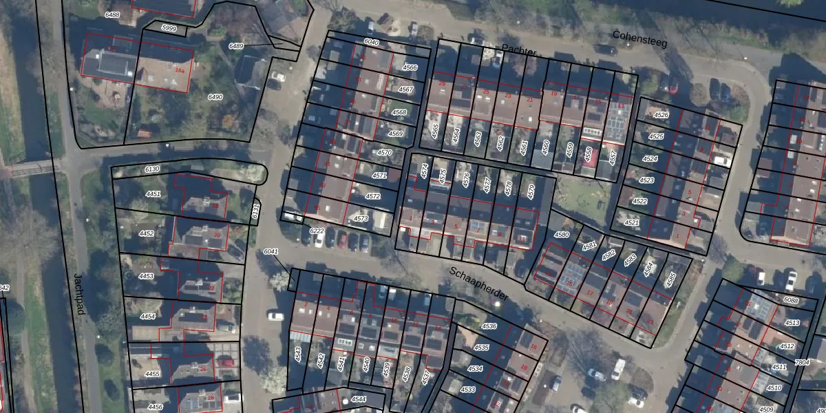 Gebruik de zoekbalk of klik op een perceel voor informatie over de adressen binnen dit perceel.