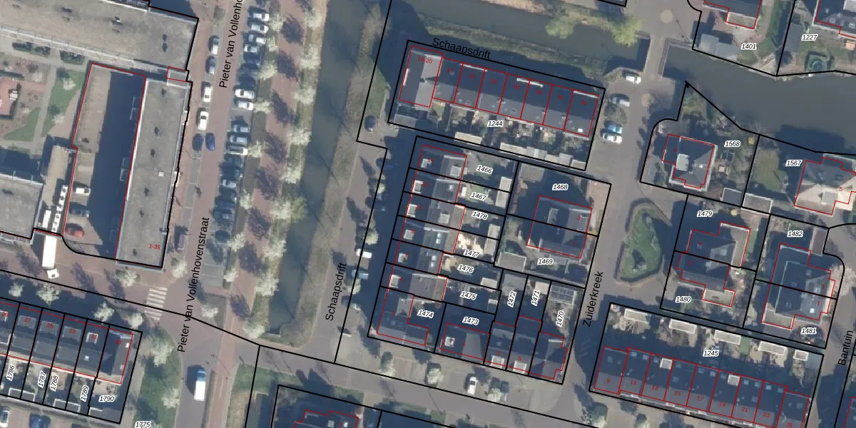 Gebruik de zoekbalk of klik op een perceel voor informatie over de adressen binnen dit perceel.