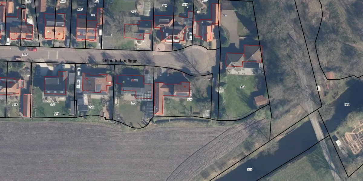 Het perceel waarop Schutterhoeflaan 34 staat heeft een oppervlakte van 795 m². Dit is een groot perceel. De perceeloppervlakte wordt geregistreerd door het Kadaster. Gedetailleerde informatie over de maten van dit perceel kunt u vinden in het rapport Kadastrale kaart met maatvoering van Schutterhoeflaan 34.