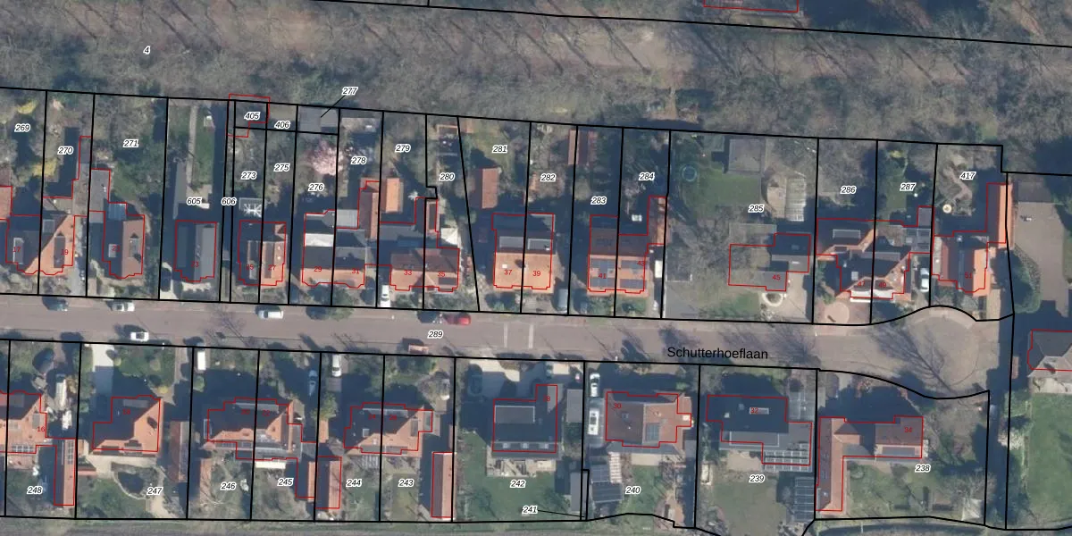Het perceel waarop Schutterhoeflaan 39 staat heeft een oppervlakte van 317 m². Dit is een groot perceel. De perceeloppervlakte wordt geregistreerd door het Kadaster. Gedetailleerde informatie over de maten van dit perceel kunt u vinden in het rapport Kadastrale kaart met maatvoering van Schutterhoeflaan 39.