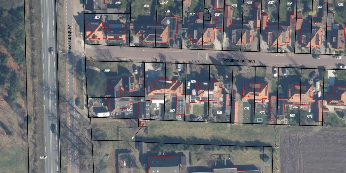 Het perceel waarop Schutterhoeflaan 4 staat heeft een oppervlakte van 397 m². Dit is een groot perceel. De perceeloppervlakte wordt geregistreerd door het Kadaster. Gedetailleerde informatie over de maten van dit perceel kunt u vinden in het rapport Kadastrale kaart met maatvoering van Schutterhoeflaan 4.