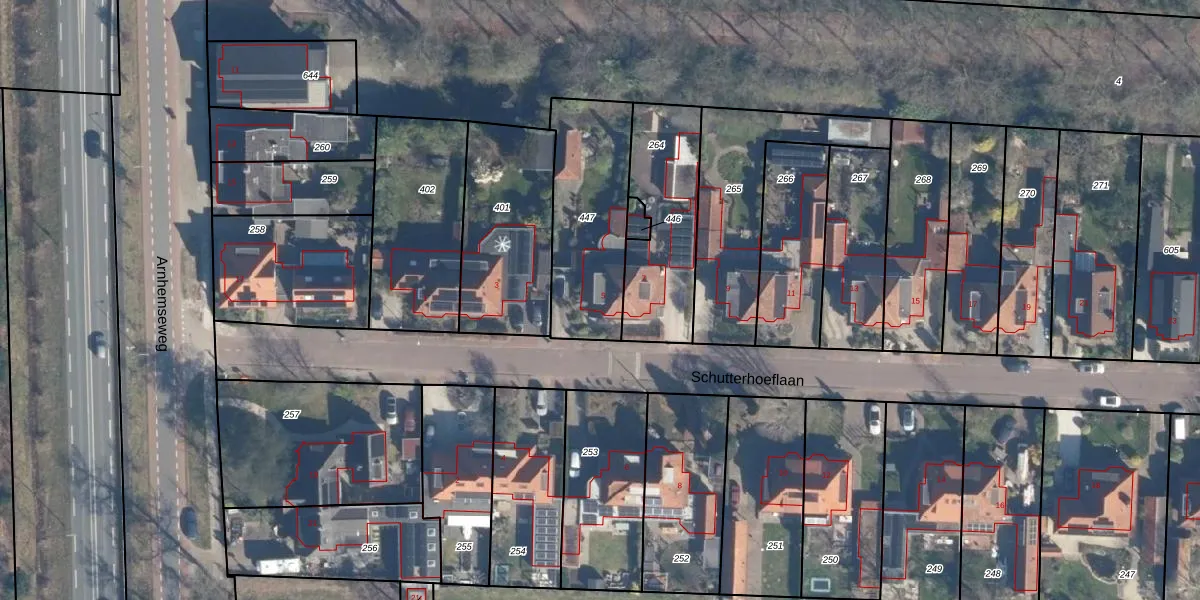 Het perceel waarop Schutterhoeflaan 5 staat heeft een oppervlakte van 490 m². Dit is een groot perceel. De perceeloppervlakte wordt geregistreerd door het Kadaster. Gedetailleerde informatie over de maten van dit perceel kunt u vinden in het rapport Kadastrale kaart met maatvoering van Schutterhoeflaan 5.
