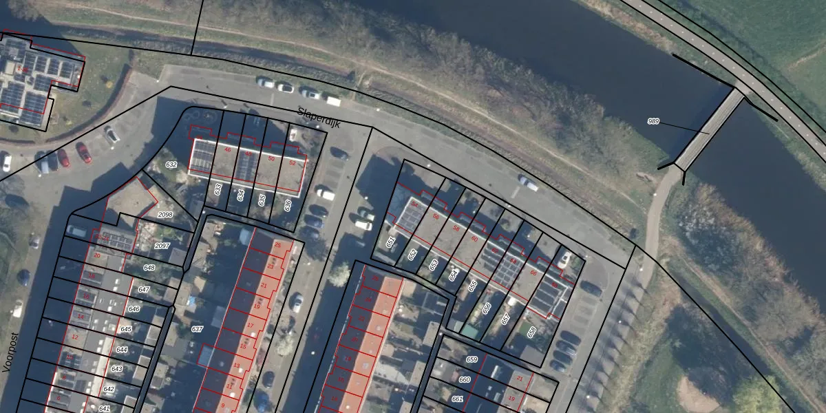 Gebruik de zoekbalk of klik op een perceel voor informatie over de adressen binnen dit perceel.