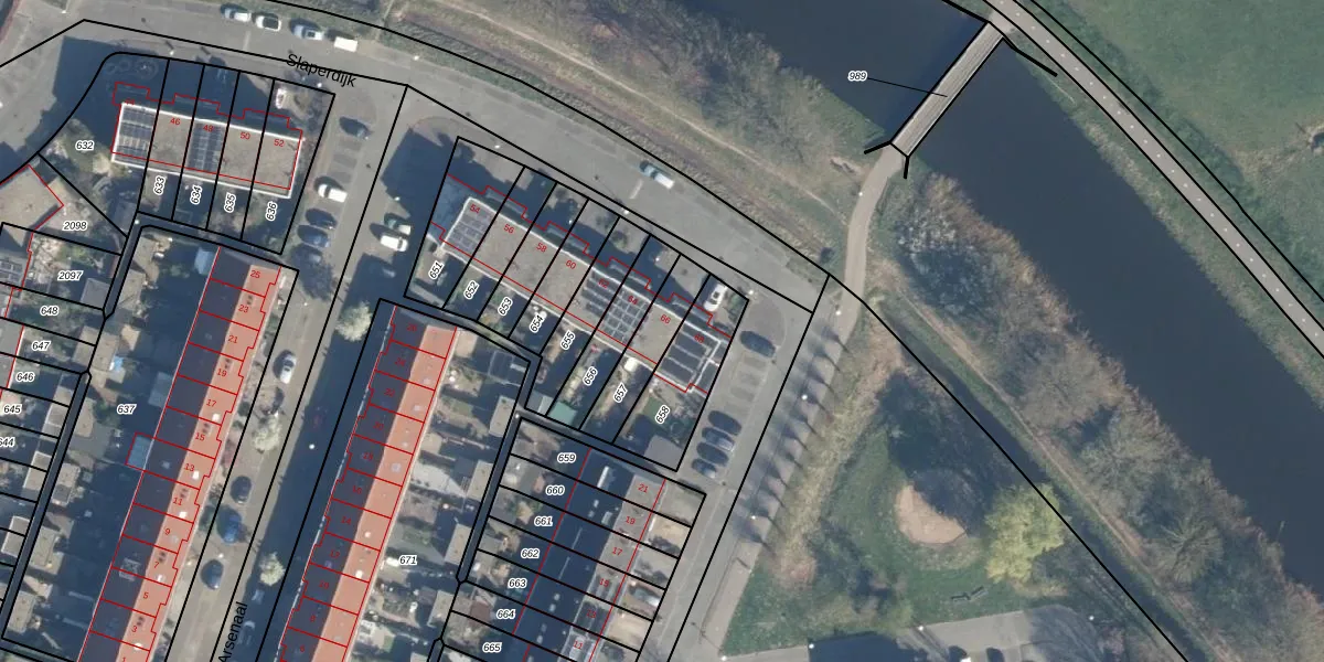 Gebruik de zoekbalk of klik op een perceel voor informatie over de adressen binnen dit perceel.