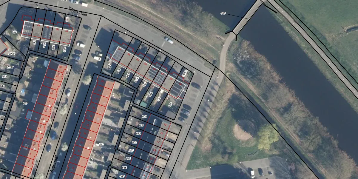 Gebruik de zoekbalk of klik op een perceel voor informatie over de adressen binnen dit perceel.