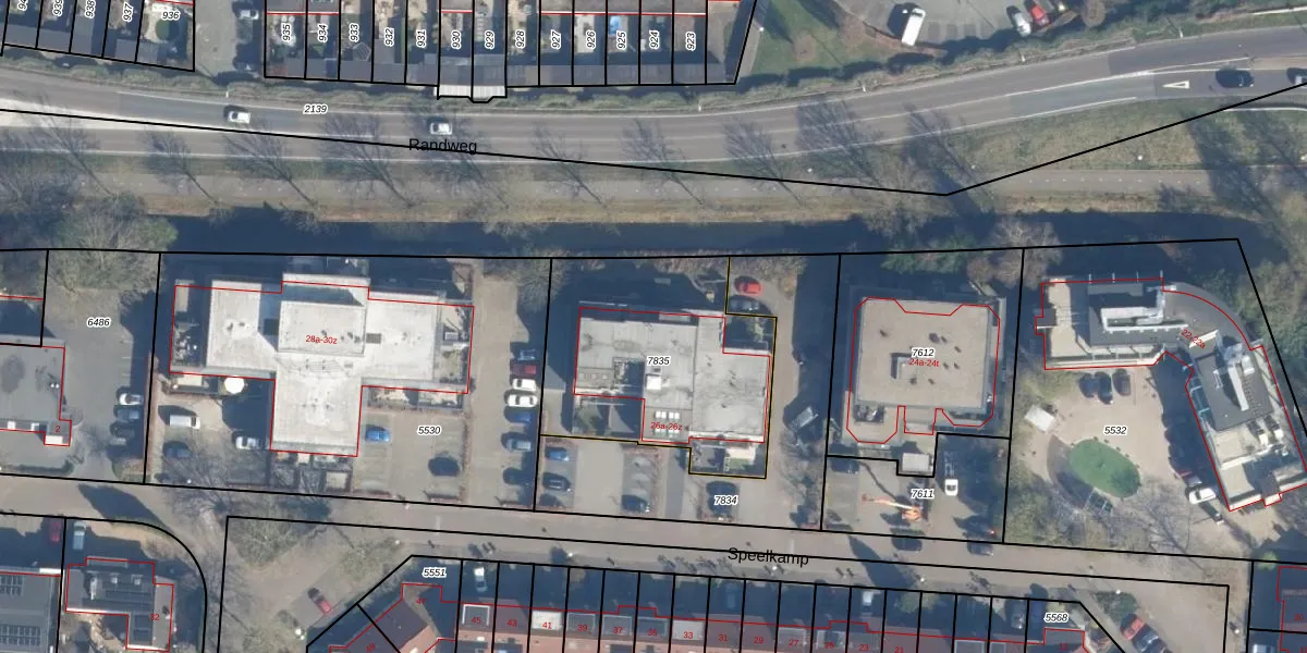Het perceel waarop Speelkamp 26-c staat heeft een oppervlakte van 978 m². Dit is een groot perceel. De perceeloppervlakte wordt geregistreerd door het Kadaster. Gedetailleerde informatie over de maten van dit perceel kunt u vinden in het rapport Kadastrale kaart met maatvoering van Speelkamp 26-c.