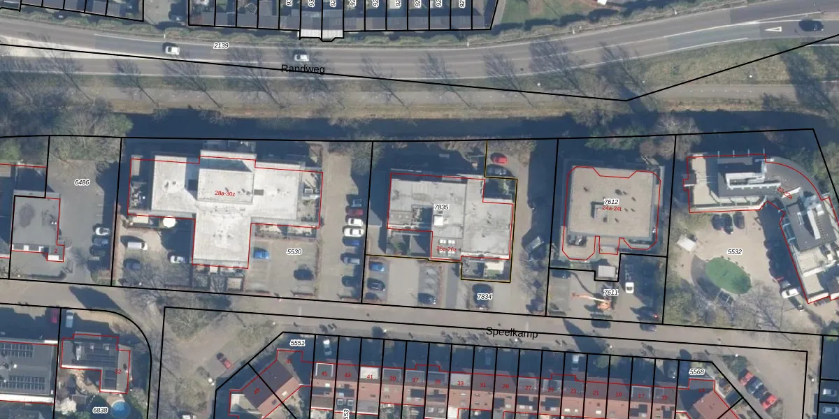 Het perceel waarop Speelkamp 26-n staat heeft een oppervlakte van 978 m². Dit is een groot perceel. De perceeloppervlakte wordt geregistreerd door het Kadaster. Gedetailleerde informatie over de maten van dit perceel kunt u vinden in het rapport Kadastrale kaart met maatvoering van Speelkamp 26-n.