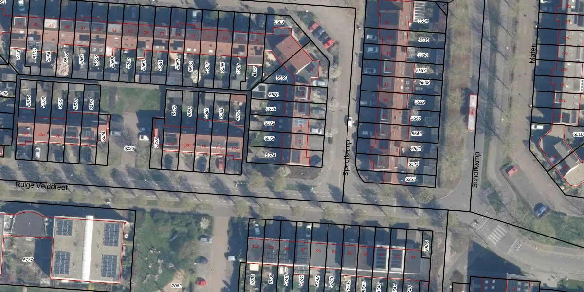 Gebruik de zoekbalk of klik op een perceel voor informatie over de adressen binnen dit perceel.