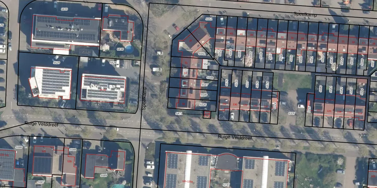 Het perceel waarop Speelkamp 57 staat heeft een oppervlakte van 140 m². Dit is een middelgroot perceel. De perceeloppervlakte wordt geregistreerd door het Kadaster. Gedetailleerde informatie over de maten van dit perceel kunt u vinden in het rapport Kadastrale kaart met maatvoering van Speelkamp 57.