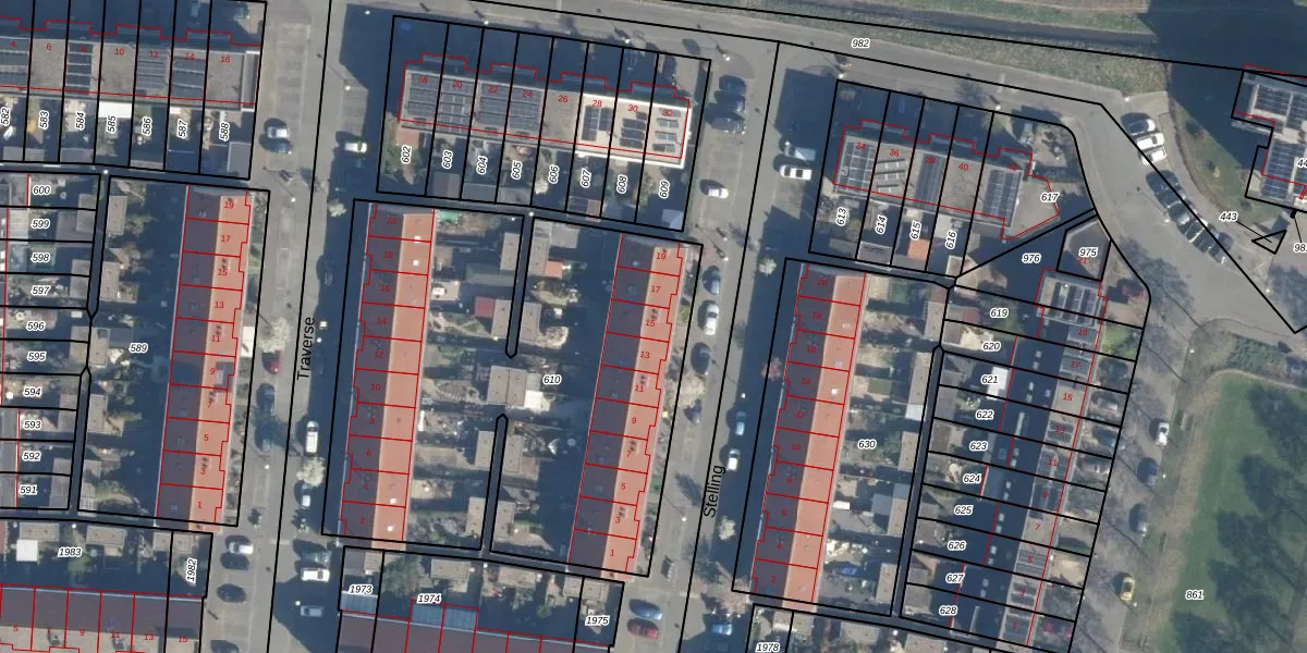 Het perceel waarop Stelling 15 staat heeft een oppervlakte van 2618 m². Dit is een zeer groot perceel. De perceeloppervlakte wordt geregistreerd door het Kadaster. Gedetailleerde informatie over de maten van dit perceel kunt u vinden in het rapport Kadastrale kaart met maatvoering van Stelling 15.