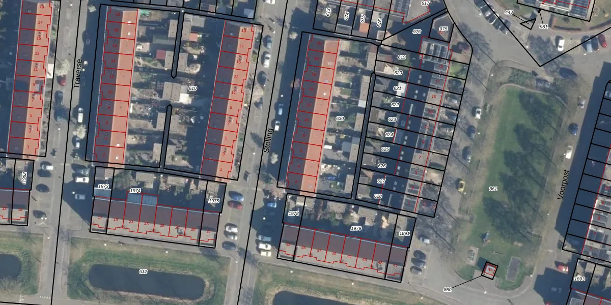 Het perceel waarop Stelling 6 staat heeft een oppervlakte van 1272 m². Dit is een zeer groot perceel. De perceeloppervlakte wordt geregistreerd door het Kadaster. Gedetailleerde informatie over de maten van dit perceel kunt u vinden in het rapport Kadastrale kaart met maatvoering van Stelling 6.