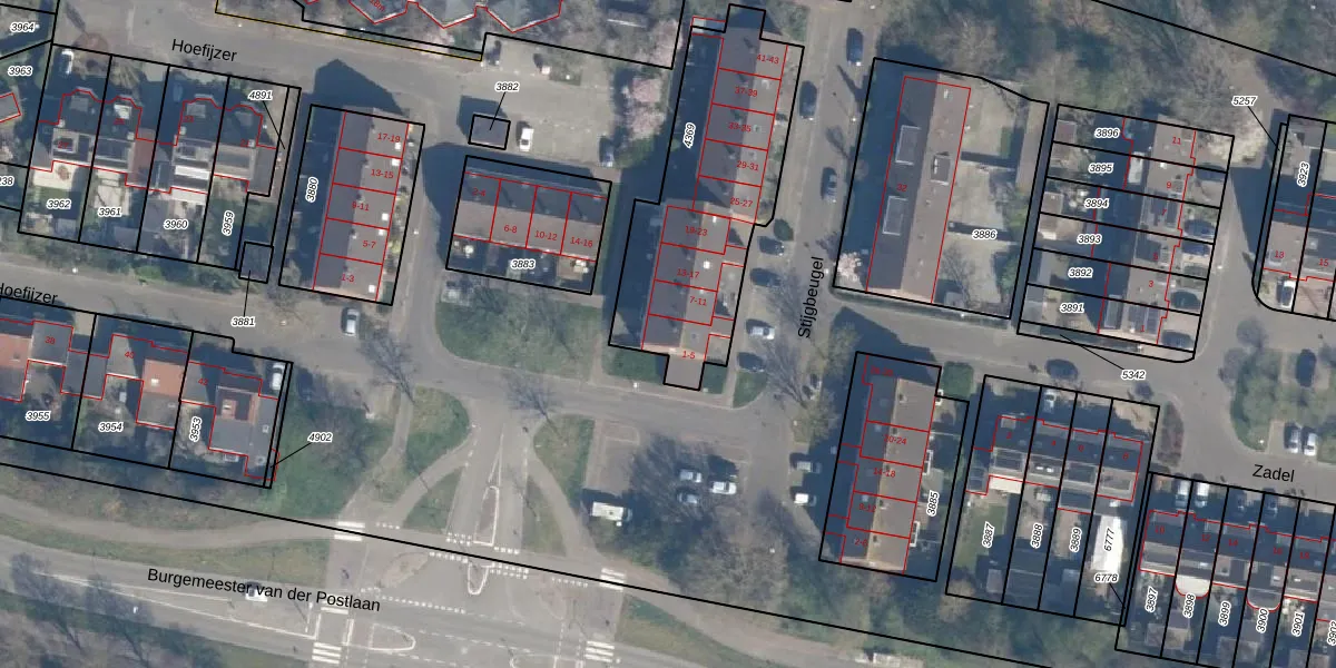 Stijgbeugel 5 is gelegen op kadastraal perceel LDN02E4369. Deze kadastrale aanduiding is uniek en wordt gebruikt door het Kadaster om eigendomsrechten en andere zakelijke rechten vast te leggen. Het perceel maakt onderdeel uit van de kadastrale gemeente Leusden.
