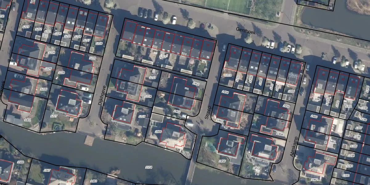 Gebruik de zoekbalk of klik op een perceel voor informatie over de adressen binnen dit perceel.