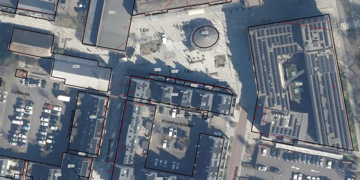 Het perceel waarop 't Erf 6 staat heeft een oppervlakte van 665 m². Dit is een groot perceel. De perceeloppervlakte wordt geregistreerd door het Kadaster. Gedetailleerde informatie over de maten van dit perceel kunt u vinden in het rapport Kadastrale kaart met maatvoering van 't Erf 6.