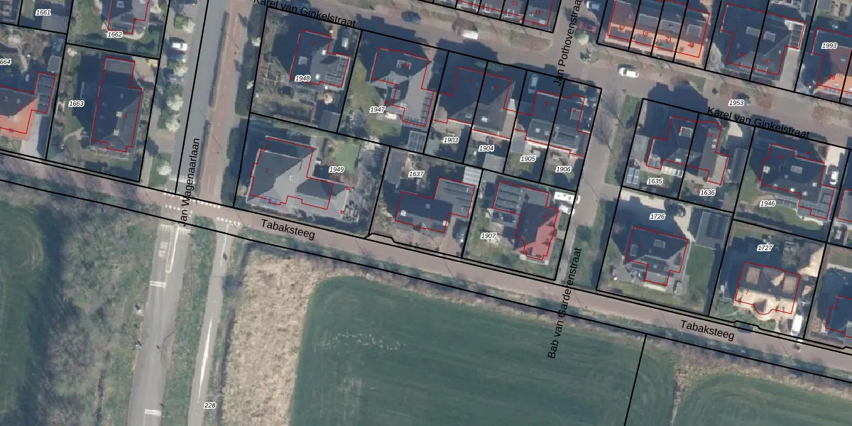 Gebruik de zoekbalk of klik op een perceel voor informatie over de adressen binnen dit perceel.