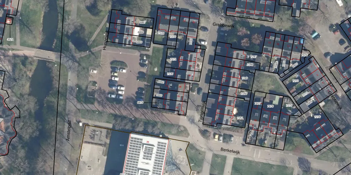 Gebruik de zoekbalk of klik op een perceel voor informatie over de adressen binnen dit perceel.