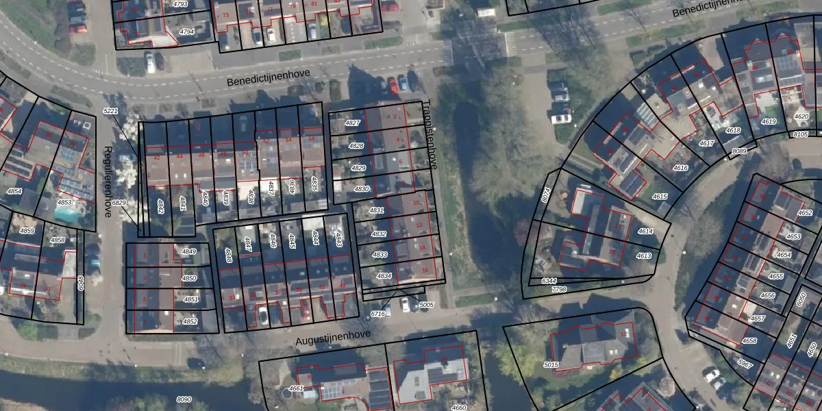 Het perceel waarop Trappistenhove 10 staat heeft een oppervlakte van 109 m². Dit is een middelgroot perceel. De perceeloppervlakte wordt geregistreerd door het Kadaster. Gedetailleerde informatie over de maten van dit perceel kunt u vinden in het rapport Kadastrale kaart met maatvoering van Trappistenhove 10.