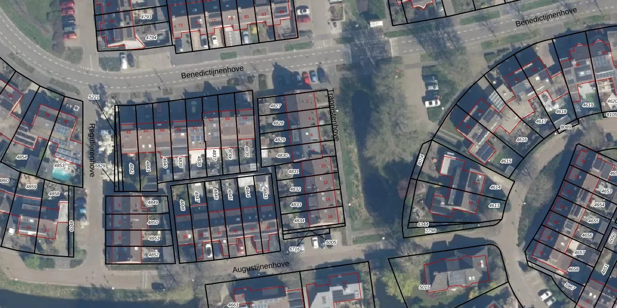 Gebruik de zoekbalk of klik op een perceel voor informatie over de adressen binnen dit perceel.