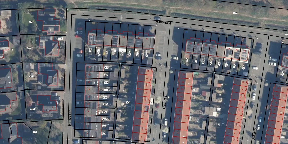 Het perceel waarop Traverse 19 staat heeft een oppervlakte van 1269 m². Dit is een zeer groot perceel. De perceeloppervlakte wordt geregistreerd door het Kadaster. Gedetailleerde informatie over de maten van dit perceel kunt u vinden in het rapport Kadastrale kaart met maatvoering van Traverse 19.