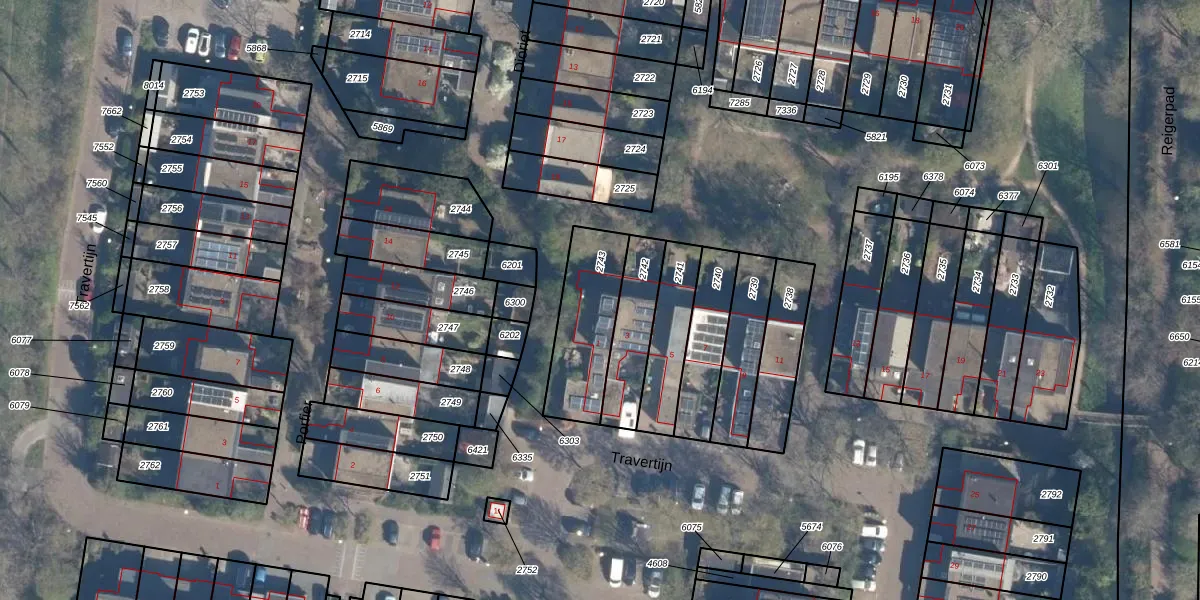 Het perceel waarop Travertijn 1 staat heeft een oppervlakte van 308 m². Dit is een groot perceel. De perceeloppervlakte wordt geregistreerd door het Kadaster. Gedetailleerde informatie over de maten van dit perceel kunt u vinden in het rapport Kadastrale kaart met maatvoering van Travertijn 1.