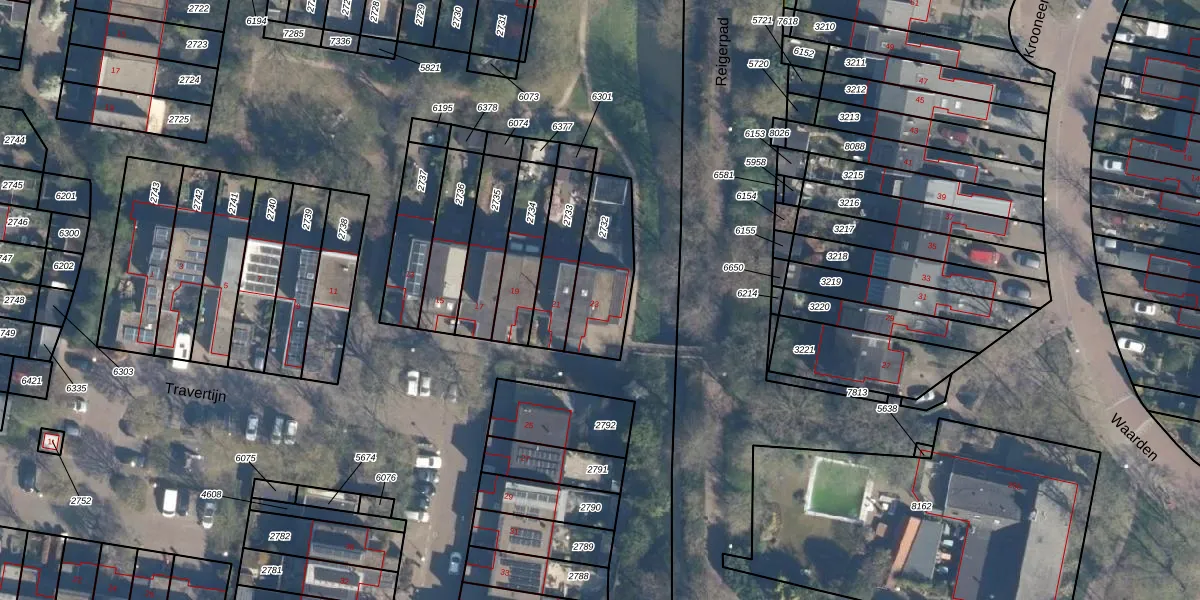 Travertijn 23 is gelegen op kadastraal perceel LDN02F2732. Deze kadastrale aanduiding is uniek en wordt gebruikt door het Kadaster om eigendomsrechten en andere zakelijke rechten vast te leggen. Het perceel maakt onderdeel uit van de kadastrale gemeente Leusden.