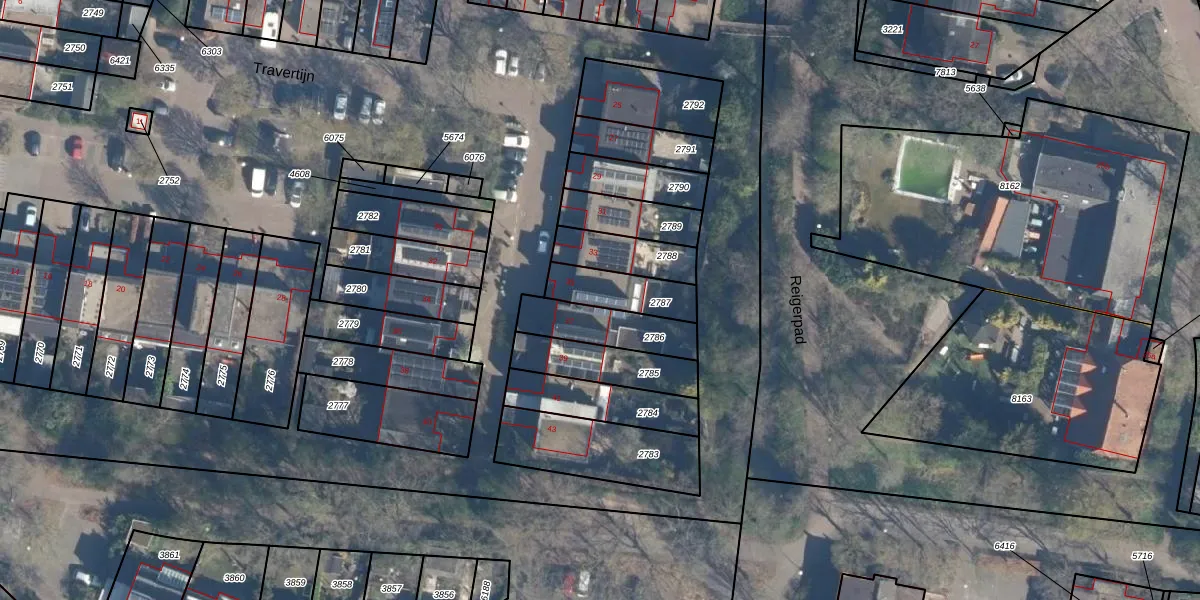 Het perceel waarop Travertijn 35 staat heeft een oppervlakte van 160 m². Dit is een middelgroot perceel. De perceeloppervlakte wordt geregistreerd door het Kadaster. Gedetailleerde informatie over de maten van dit perceel kunt u vinden in het rapport Kadastrale kaart met maatvoering van Travertijn 35.