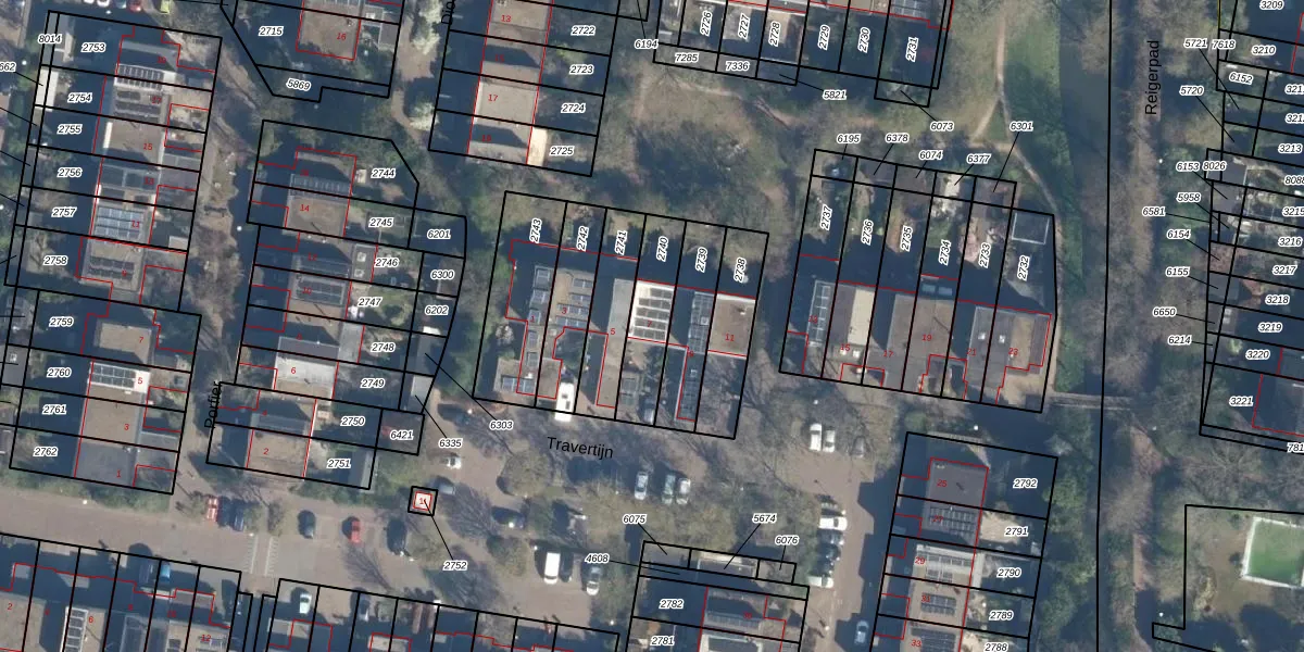 Het perceel waarop Travertijn 7 staat heeft een oppervlakte van 202 m². Dit is een middelgroot perceel. De perceeloppervlakte wordt geregistreerd door het Kadaster. Gedetailleerde informatie over de maten van dit perceel kunt u vinden in het rapport Kadastrale kaart met maatvoering van Travertijn 7.