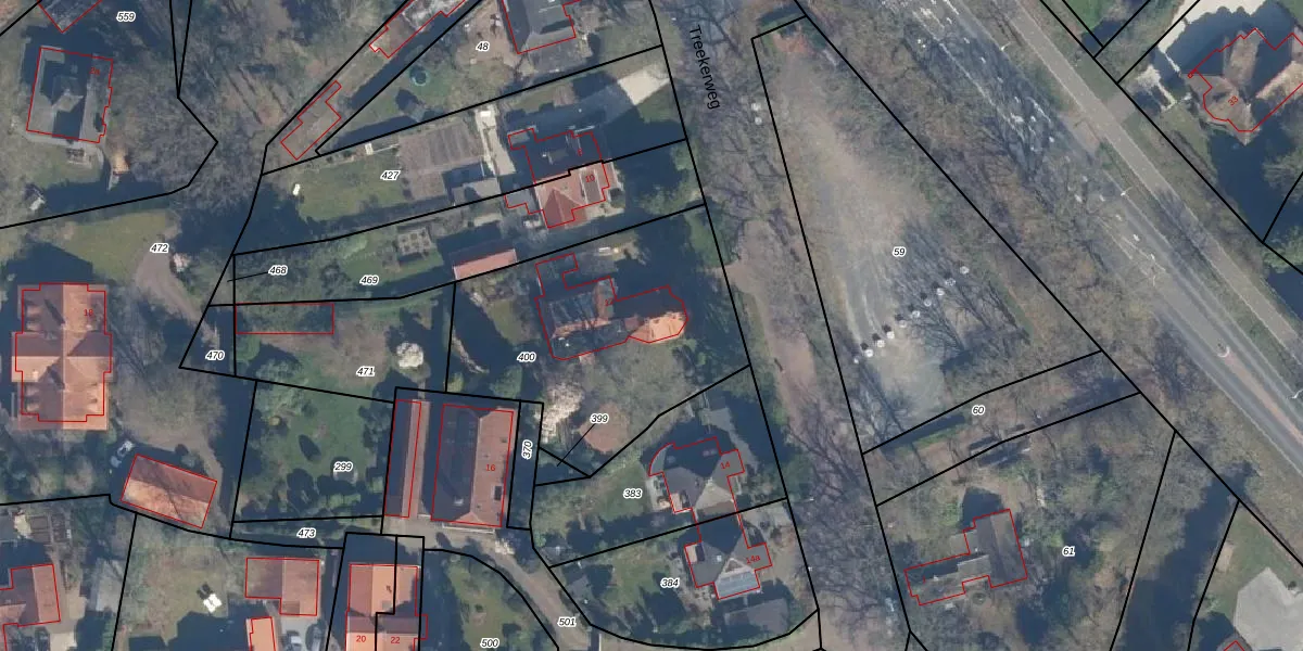 Het perceel waarop Treekerweg 12 staat heeft een oppervlakte van 1225 m². Dit is een zeer groot perceel. De perceeloppervlakte wordt geregistreerd door het Kadaster. Gedetailleerde informatie over de maten van dit perceel kunt u vinden in het rapport Kadastrale kaart met maatvoering van Treekerweg 12.