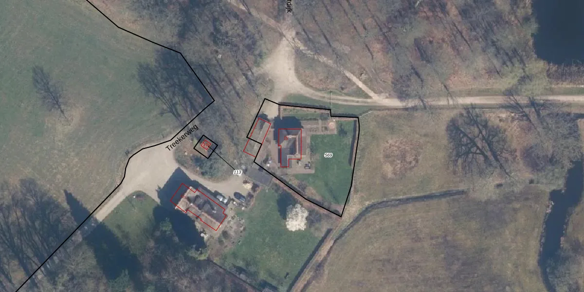 Het perceel waarop Treekerweg 15 staat heeft een oppervlakte van 990 m². Dit is een groot perceel. De perceeloppervlakte wordt geregistreerd door het Kadaster. Gedetailleerde informatie over de maten van dit perceel kunt u vinden in het rapport Kadastrale kaart met maatvoering van Treekerweg 15.