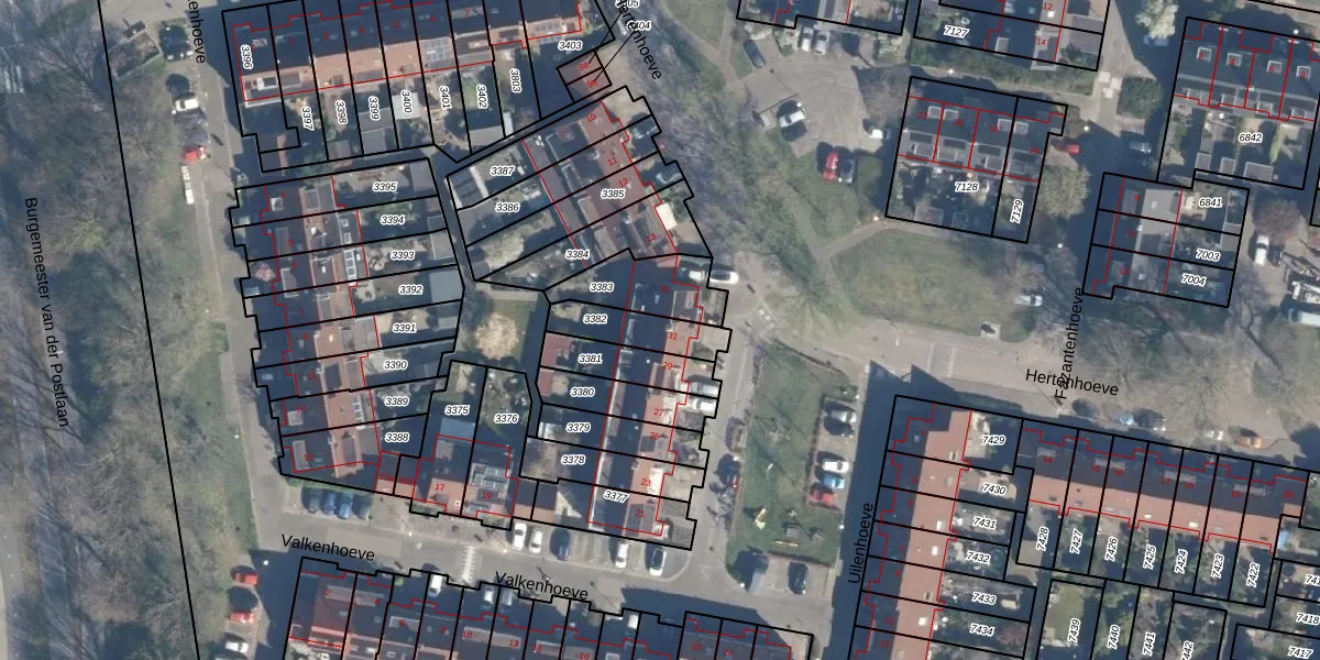 Gebruik de zoekbalk of klik op een perceel voor informatie over de adressen binnen dit perceel.