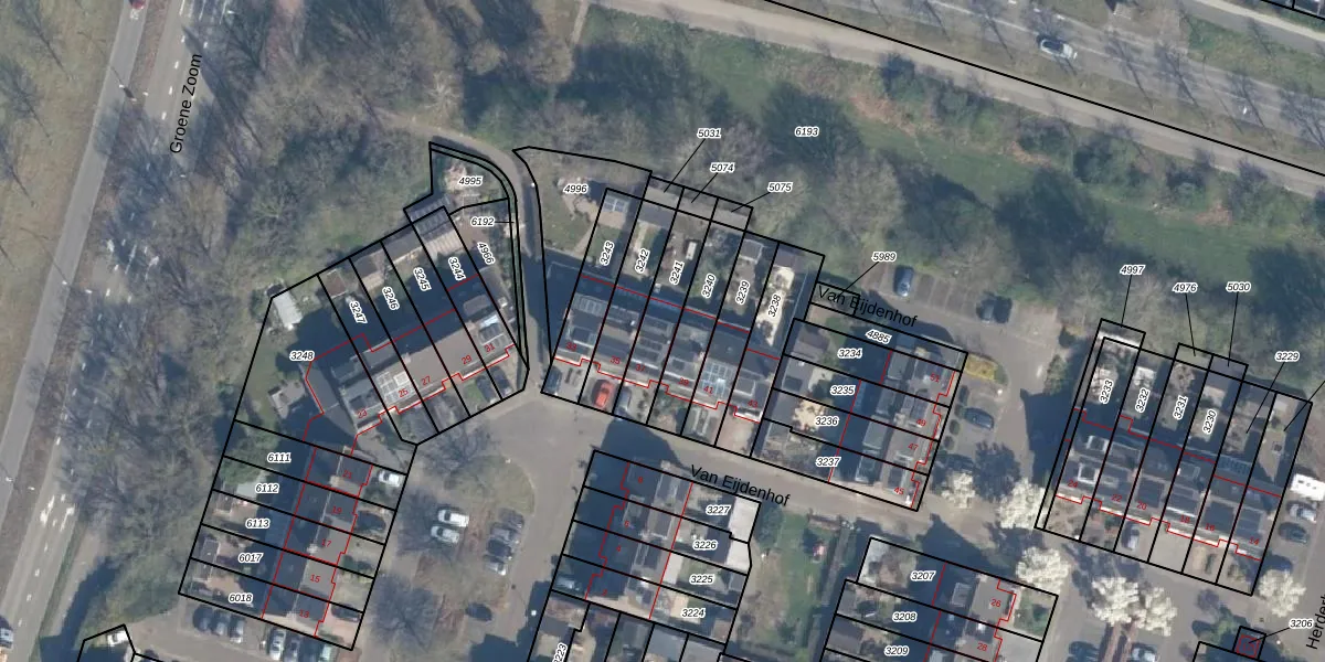 Het perceel waarop Van Eijdenhof 37 staat heeft een oppervlakte van 175 m². Dit is een middelgroot perceel. De perceeloppervlakte wordt geregistreerd door het Kadaster. Gedetailleerde informatie over de maten van dit perceel kunt u vinden in het rapport Kadastrale kaart met maatvoering van Van Eijdenhof 37.