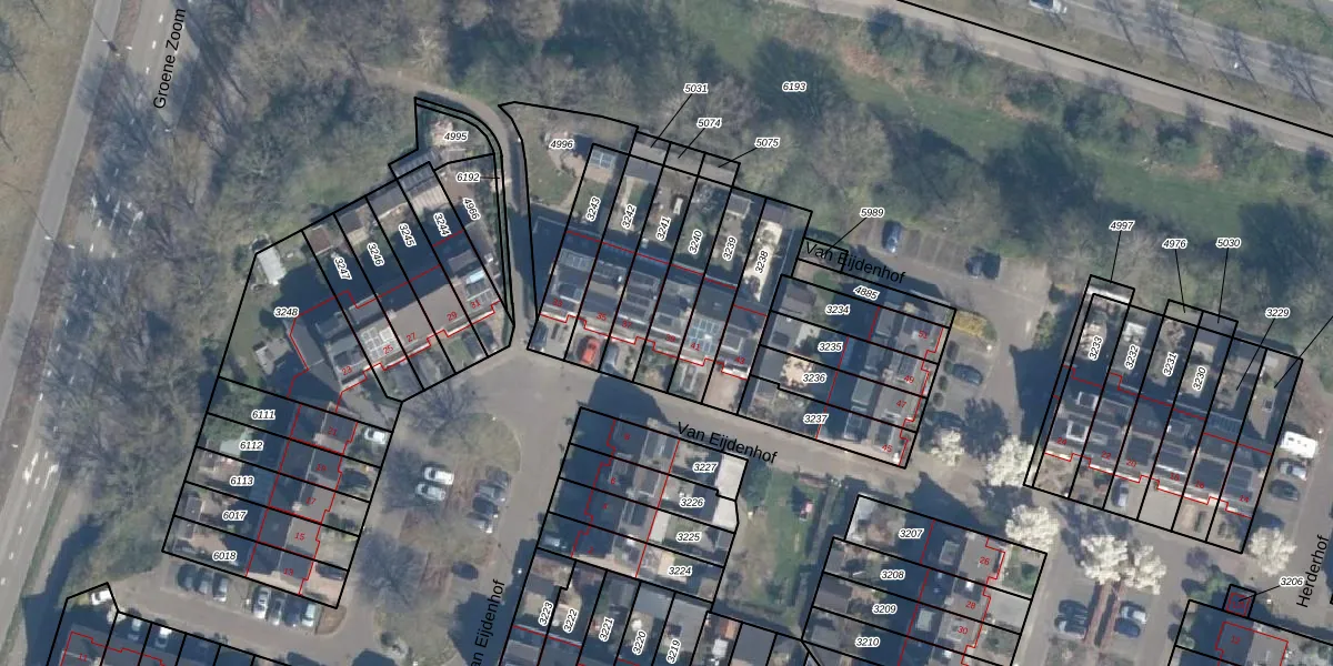 Het perceel waarop Van Eijdenhof 39 staat heeft een oppervlakte van 176 m². Dit is een middelgroot perceel. De perceeloppervlakte wordt geregistreerd door het Kadaster. Gedetailleerde informatie over de maten van dit perceel kunt u vinden in het rapport Kadastrale kaart met maatvoering van Van Eijdenhof 39.