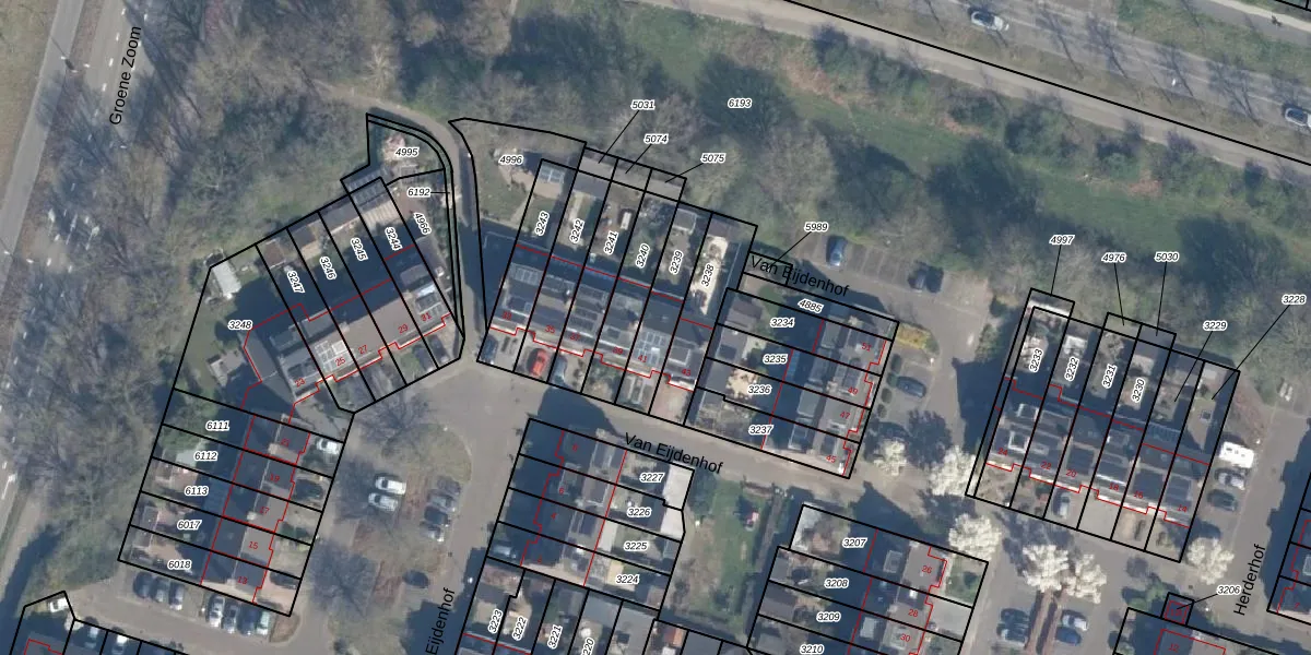 Het perceel waarop Van Eijdenhof 41 staat heeft een oppervlakte van 176 m². Dit is een middelgroot perceel. De perceeloppervlakte wordt geregistreerd door het Kadaster. Gedetailleerde informatie over de maten van dit perceel kunt u vinden in het rapport Kadastrale kaart met maatvoering van Van Eijdenhof 41.