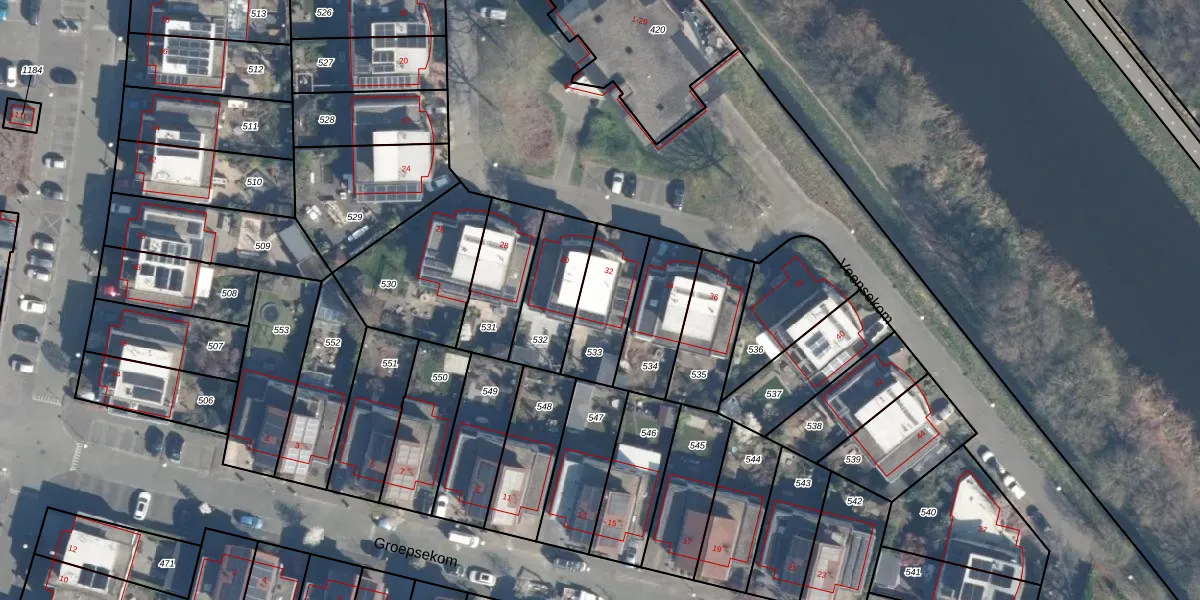 Gebruik de zoekbalk of klik op een perceel voor informatie over de adressen binnen dit perceel.