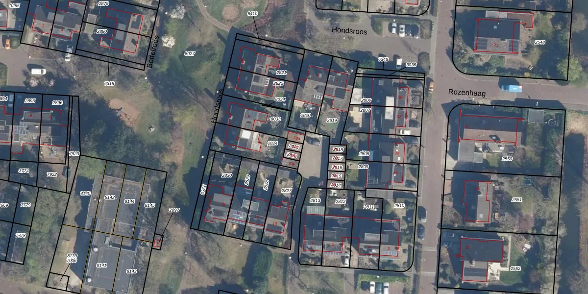 Gebruik de zoekbalk of klik op een perceel voor informatie over de adressen binnen dit perceel.