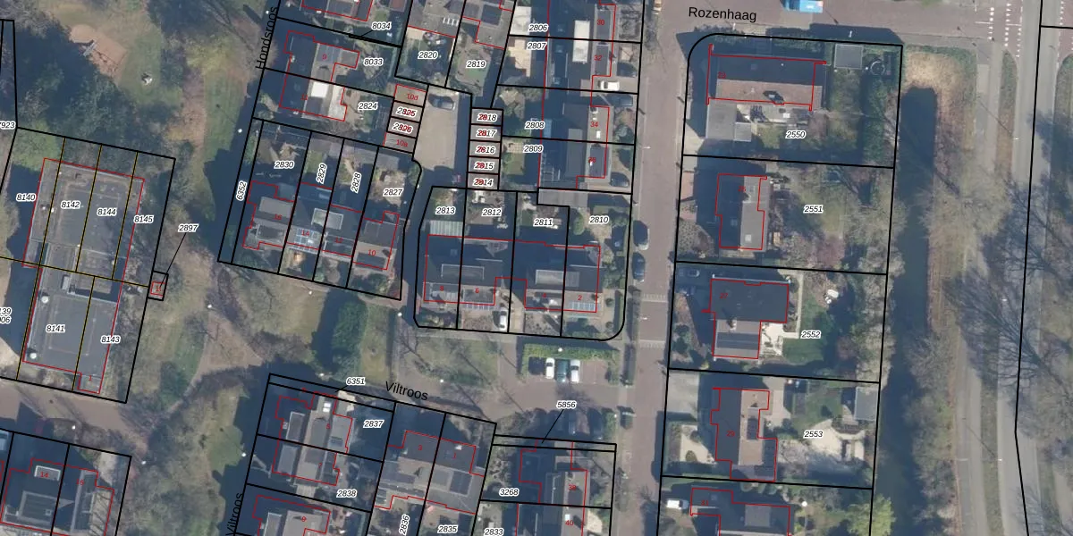 Gebruik de zoekbalk of klik op een perceel voor informatie over de adressen binnen dit perceel.