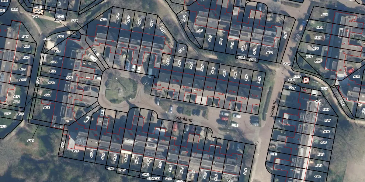 Vlasland 40 is gelegen op kadastraal perceel LDN02E4644. Deze kadastrale aanduiding is uniek en wordt gebruikt door het Kadaster om eigendomsrechten en andere zakelijke rechten vast te leggen. Het perceel maakt onderdeel uit van de kadastrale gemeente Leusden.