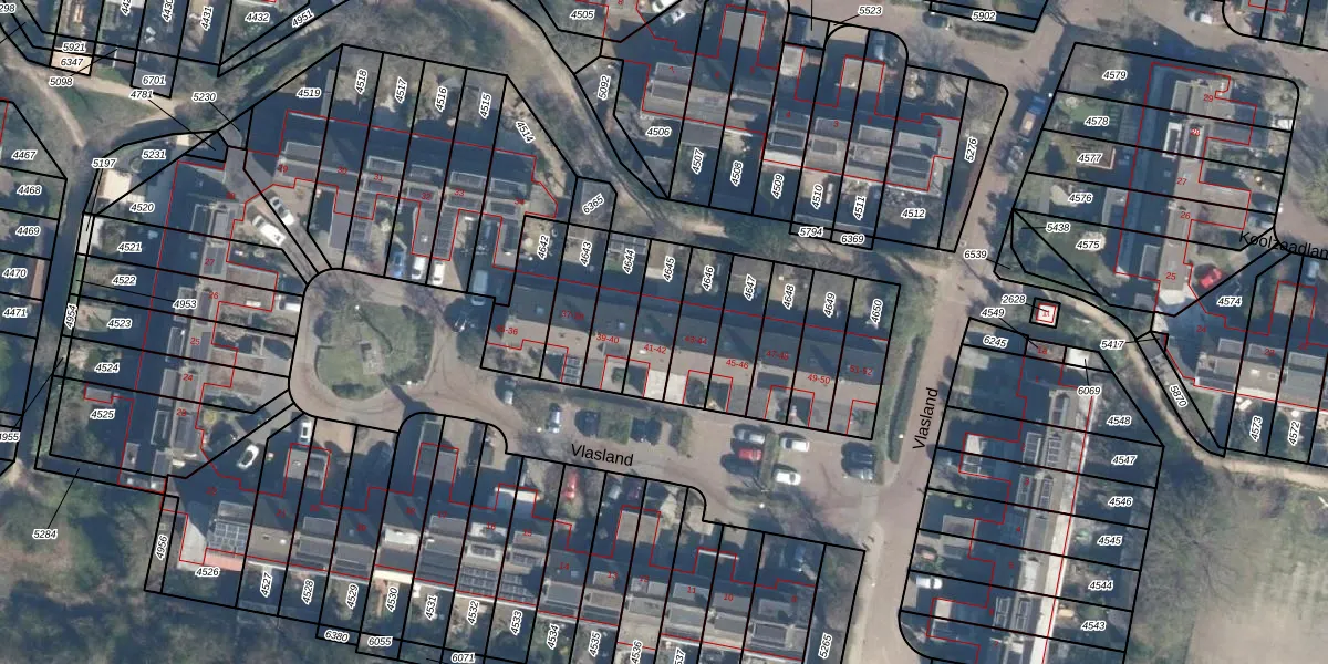 Vlasland 41 is gelegen op kadastraal perceel LDN02E4645. Deze kadastrale aanduiding is uniek en wordt gebruikt door het Kadaster om eigendomsrechten en andere zakelijke rechten vast te leggen. Het perceel maakt onderdeel uit van de kadastrale gemeente Leusden.