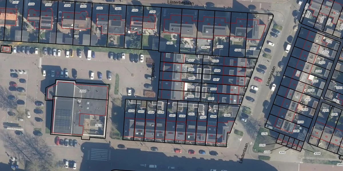 Gebruik de zoekbalk of klik op een perceel voor informatie over de adressen binnen dit perceel.