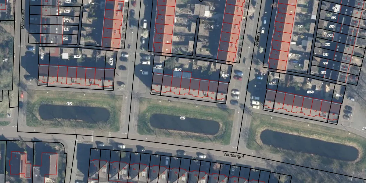Het perceel waarop Vlietsingel 23 staat heeft een oppervlakte van 674 m². Dit is een groot perceel. De perceeloppervlakte wordt geregistreerd door het Kadaster. Gedetailleerde informatie over de maten van dit perceel kunt u vinden in het rapport Kadastrale kaart met maatvoering van Vlietsingel 23.