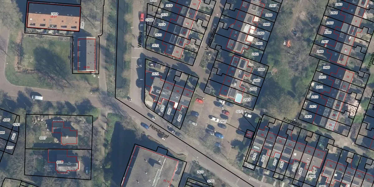 Gebruik de zoekbalk of klik op een perceel voor informatie over de adressen binnen dit perceel.