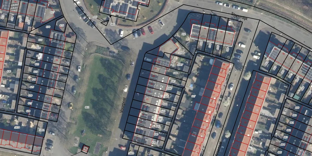 Gebruik de zoekbalk of klik op een perceel voor informatie over de adressen binnen dit perceel.