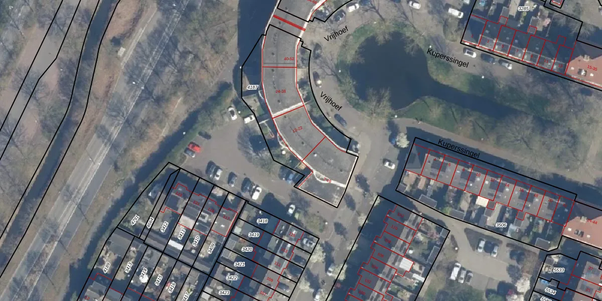 Vrijhoef 16 is gelegen op kadastraal perceel LDN02E4187. Deze kadastrale aanduiding is uniek en wordt gebruikt door het Kadaster om eigendomsrechten en andere zakelijke rechten vast te leggen. Het perceel maakt onderdeel uit van de kadastrale gemeente Leusden.