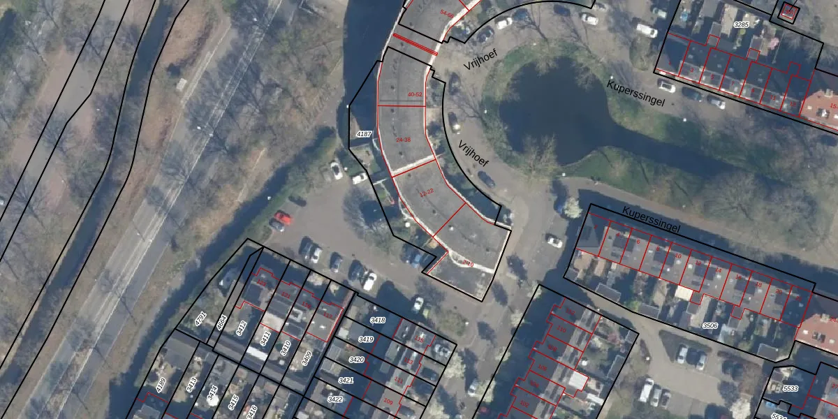 Vrijhoef 20 is gelegen op kadastraal perceel LDN02E4187. Deze kadastrale aanduiding is uniek en wordt gebruikt door het Kadaster om eigendomsrechten en andere zakelijke rechten vast te leggen. Het perceel maakt onderdeel uit van de kadastrale gemeente Leusden.