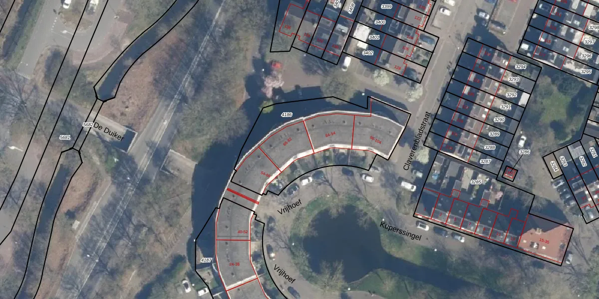 Het perceel waarop Vrijhoef 78 staat heeft een oppervlakte van 1240 m². Dit is een zeer groot perceel. De perceeloppervlakte wordt geregistreerd door het Kadaster. Gedetailleerde informatie over de maten van dit perceel kunt u vinden in het rapport Kadastrale kaart met maatvoering van Vrijhoef 78.
