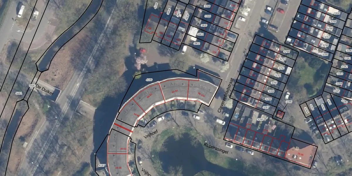 Het perceel waarop Vrijhoef 88 staat heeft een oppervlakte van 1240 m². Dit is een zeer groot perceel. De perceeloppervlakte wordt geregistreerd door het Kadaster. Gedetailleerde informatie over de maten van dit perceel kunt u vinden in het rapport Kadastrale kaart met maatvoering van Vrijhoef 88.