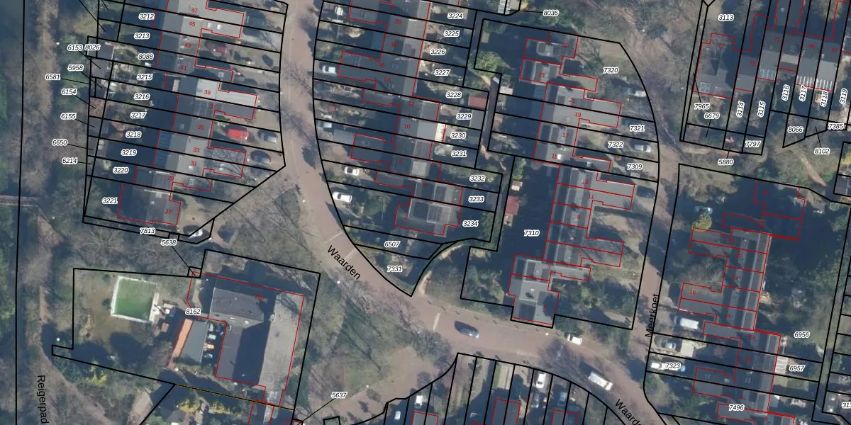 Het perceel waarop Waarden 2 staat heeft een oppervlakte van 338 m². Dit is een groot perceel. De perceeloppervlakte wordt geregistreerd door het Kadaster. Gedetailleerde informatie over de maten van dit perceel kunt u vinden in het rapport Kadastrale kaart met maatvoering van Waarden 2.