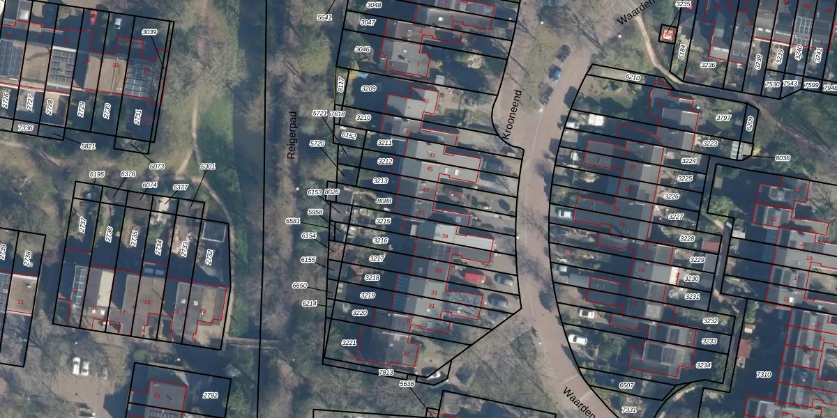 Gebruik de zoekbalk of klik op een perceel voor informatie over de adressen binnen dit perceel.